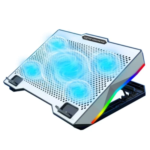 پایه خنک کننده Cool Cold S-605 Silver یکی از مدل های جدید و بهینه شده سری خنک کننده های کول کُلد است. با ۵ فن پر قدرت، نور پردازی ملایم آبی و طراحی فلزی یکپارچه، این مدل برای کاربران حرفه ای، طراحان و گیمر هایی ساخته شده که پایداری و زیبایی در کنار عملکرد بی صدا می خواهند. طراحی فلزی خاکستری (Silver Brushed Finish) در مدل S605 حس پریمیوم و استحکام را به کاربر می دهد. مش فلزی مرکزی جریان هوا را به نقاط داغ CPU و GPU هدایت می کند، در حالی که پایه های پوشیده با پد سیلیکونی، ثبات و عدم لغزش را تضمین می کنند.