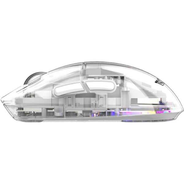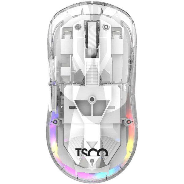چهار نشانگر LED روی بدنه، وضعیت باتری را در چهار سطح (۲۵٪، ۵۰٪، ۷۵٪، ۱۰۰٪) نمایش می دهند و در زمان کم شدن شارژ نیز هشدار لازم را می دهند. این یعنی همیشه در جریان وضعیت انرژی هستید و غافلگیر نمی شوید. یکی از ویژگی های چشمگیر این موس، طراحی شفاف و شیشه ای شکل بدنه است که حس مدرن و مینیمال را القا می کند. وجود نور پردازی RGB داخلی که به صورت نرم افزاری قابل کنترل و شخصی سازی است، TM 795 W را وارد دنیای موس های گیمینگ و حرفه ای کرده است. بدنه ی موس از پلاستیک ABS با کیفیت ساخته شده؛ مقاوم در برابر سایش و سبک برای حمل آسان. وزن حدودی ۷۵ گرم نیز نه آن قدر زیاد است که مانع حرکات سریع شود، و نه آن قدر سبک که حس کنترل را از کاربر بگیرد. این تعادل دقیق، موس را برای استفاده روزمره، جلسات کاری یا بازی های سریع کاملاً مناسب کرده است.