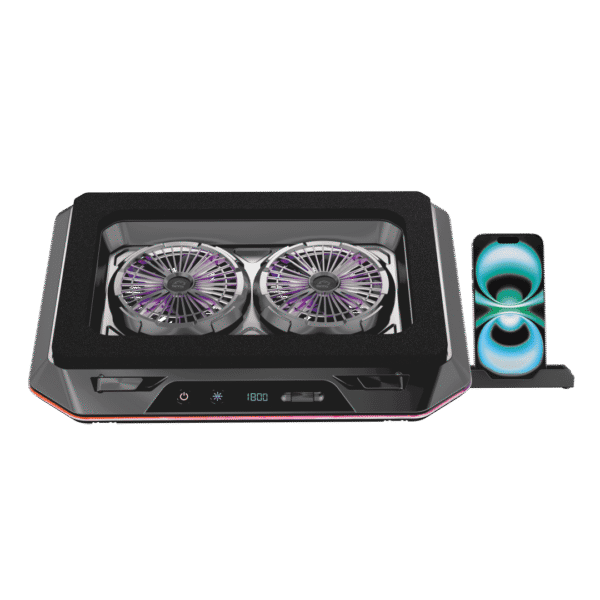 در قلب عملکرد این پایه، دو عدد فن قدرتمند ۱۴۰ میلی متری با تکنولوژی Air-Cooled قرار دارند که بصورت مؤثر جریان هوا را به زیر لپ تاپ هدایت می کنند. این فن ها دارای قابلیت کنترل سرعت هستند و می توانند در بازه ۳۰۰ تا ۱۸۰۰ دور در دقیقه کار کنند. وجود نمایشگر LCD در قسمت جلویی دستگاه، ویژگی حرفه ای دیگری است که در GCLP 3145 مشاهده می شود. با وزنی در حدود ۱۳۰۰ گرم، GCLP 3145 به راحتی قابل حمل است، بدون اینکه از استحکام آن کاسته شود. بدنهی این کول پد به طور کامل از پلاستیک مقاوم ساخته شده است که در کنار سبکی، مقاومت بالایی در برابر فشار و حرارت دارد. یکی از نکات کلیدی این پایه، امکان تنظیم ارتفاع در ۸ حالت مختلف است. این ویژگی به شما اجازه می دهد ارتفاع نمایشگر لپ تاپ را دقیقاً مطابق با وضعیت بدنی خود تنظیم کنید GCLP 3145 از نظر امکانات جانبی هم دست پر آمده. دو پورت USB برای اتصال مستقیم دستگاه های دیگر به کول پد در نظر گرفته شده و از نوع USB استاندارد و Type-C پشتیبانی می کند.