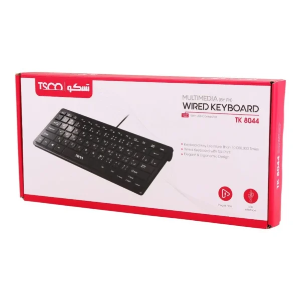 کلید های مقاوم و سوئیچ های با کیفیت آن، عملکردی قابل اعتماد ارائه می دهند. این محصول به ویژه برای افرادی که به دنبال یک دستگاه اقتصادی اما با کیفیت هستند، گزینه ای مناسب است. کیبورد تسکو مدل TK 8044 به دلیل طراحی کوچک و فشرده خود، برای دانش آموزان، کارمندان، و حتی افرادی که به دنبال یک کیبورد مسافرتی هستند، بسیار کاربردی است. قابلیت اتصال آسان و بدون نیاز به نرم افزار اضافی، استفاده از آن را برای کاربران مبتدی ساده و راحت کرده است.